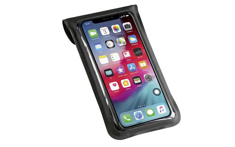 Praktische flache Schutzhülle für Smartphones bis maximal 7,5x15cm mit Klapplasche und Klettverschluss aus robustem verschweißtem, textilem Material. Ideal zur Navigation – immer im Blick und direkt erreichbar. Das große Klarsichtfenster lässt die Bedienung durch die Folie zu. Einfacher Wechsel von Hoch- auf Querformat.